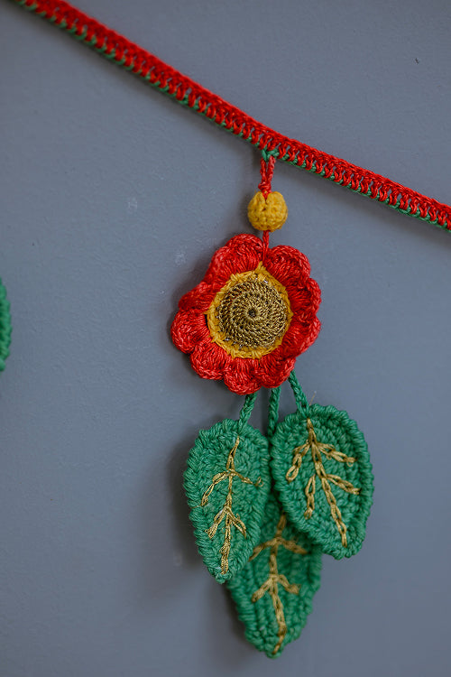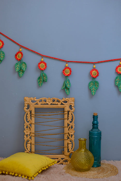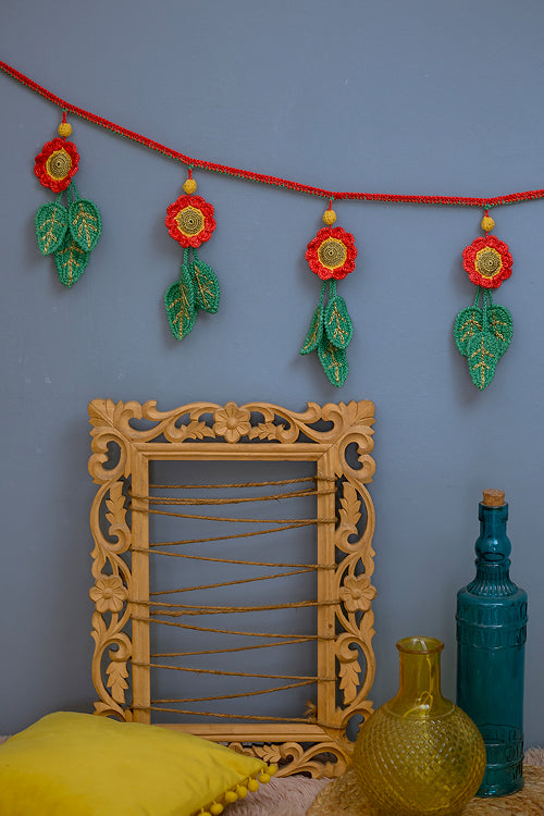 Material -Wooden Beads, Viscose Thread, Cotton Thread, Metallic Thread