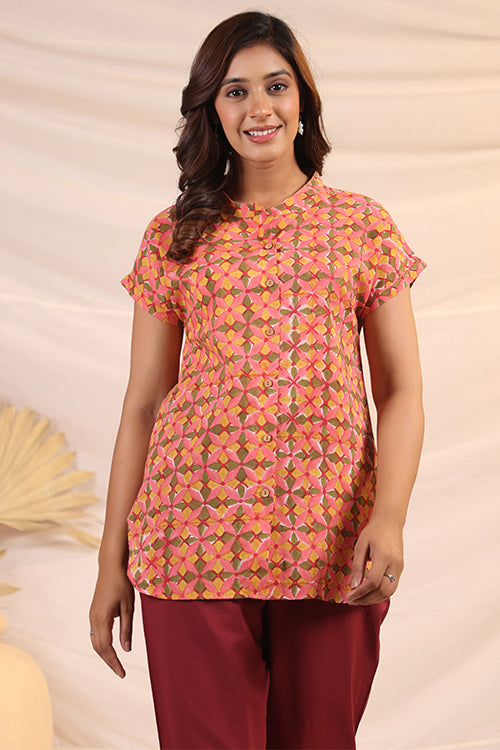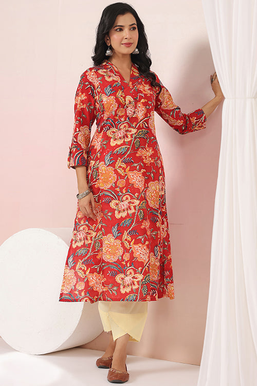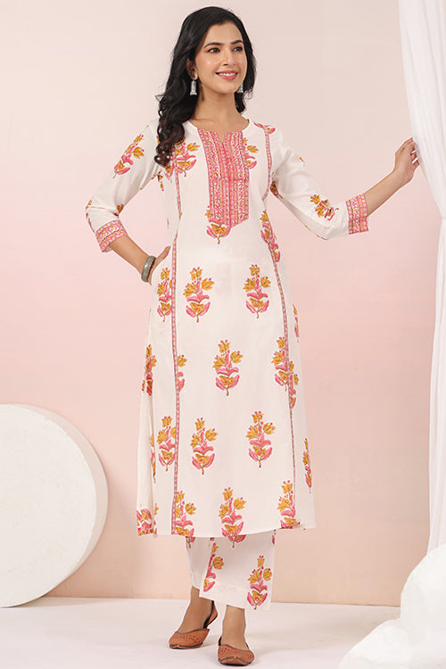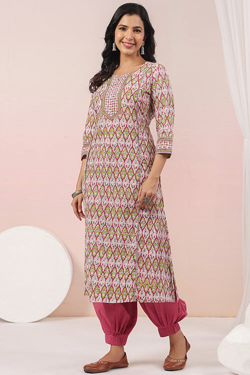 Shuddhi Yellow And Pink Semi Aline Kurta