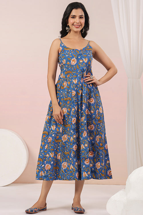 Shuddhi Cobalt Blue And Lemin Yellow Double Layered Dress