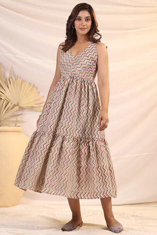 Shuddhi Yellow And Pink Tier Wrap Dress