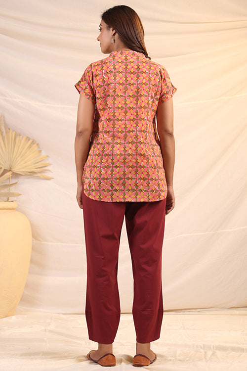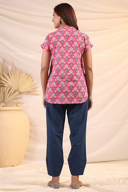 Shuddhi White and Purple Handblock Printed Short Kurti