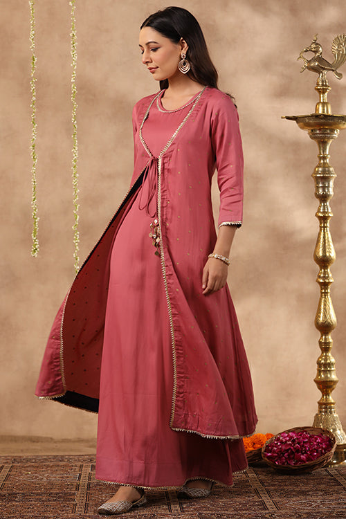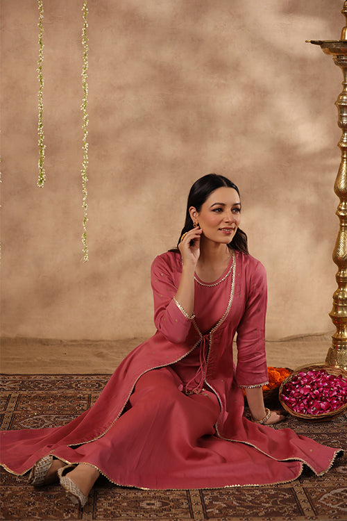 Shuddhi Pink and Teal Green A line Gota Lace Kurta