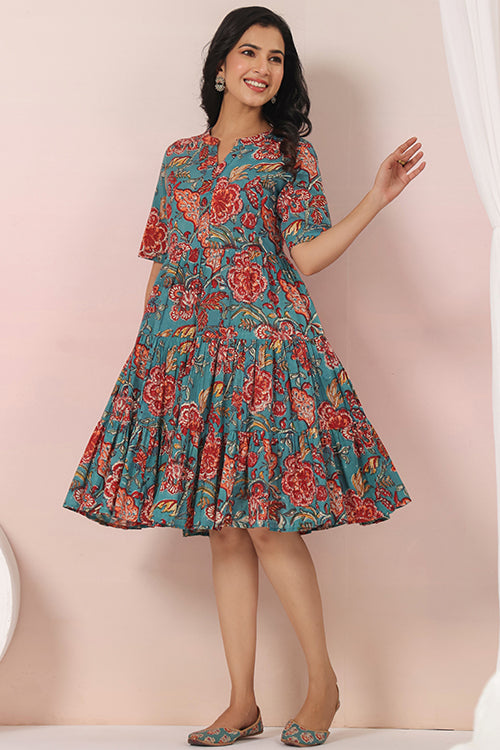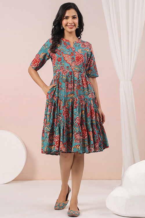 Shuddhi Cerulean Blue With Teal Green Double Layered Dress