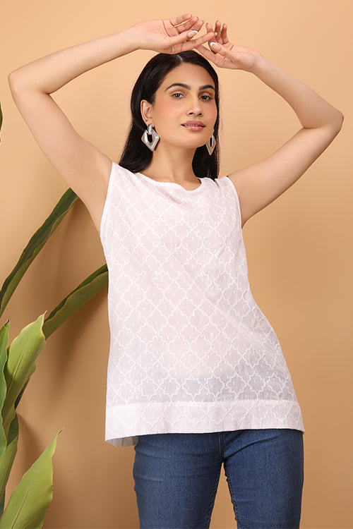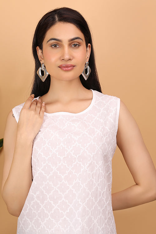 Shwet Women White Chikankari Sleevless Tier Top - 293
