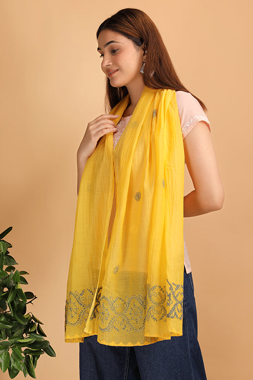 Brighten up your wardrobe with the Shwet women’s yellow Chikankari Chanderi stole. Crafted from luxurious Chanderi fabric, this stole boasts a light, airy feel with a subtle sheen. The vibrant yellow hue is beautifully complemented by intricate Chikankari embroidery, hand-stitched by skilled artisans. Ideal for adding a pop of color and traditional elegance to any outfit, this versatile stole can be draped over a kurta, dress, or top, making it a perfect accessory for both casual and festive occasions.