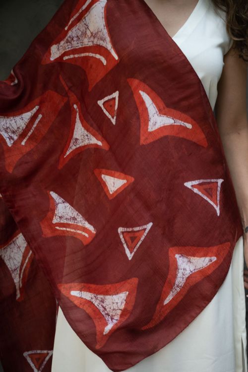 TICH Light & Elegant Silk Batik Stole - Red Abstract