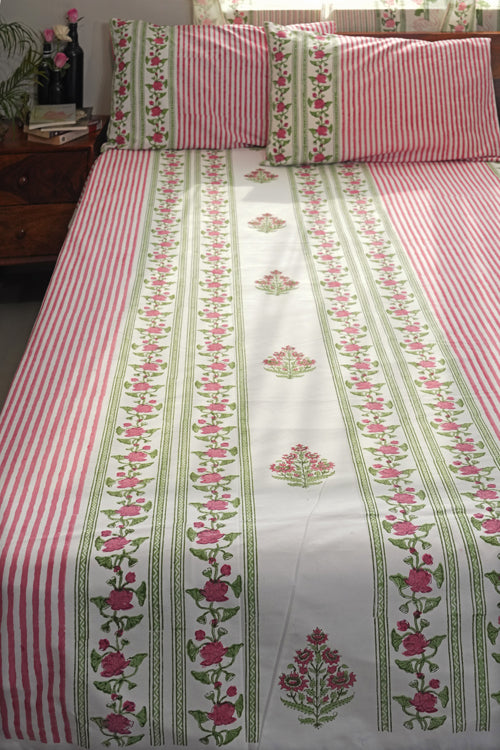 Transform your bedroom into a tranquil oasis with our Serene Swan Lotus Dreamscape Bedsheet. This exquisite hand-block printed bedsheet, crafted from soft, breathable cotton, features a captivating design of graceful swans gliding amidst blooming lotuses. The delicate pink and green hues evoke a sense of peace and harmony, inviting you to relax and unwind after a long day. Indulge in the luxurious feel of this premium bedsheet, and experience the artistry of traditional hand-block printing. Each piece is a testament to the skill and dedication of our artisans, ensuring that you bring home a unique and timeless treasure. Elevate your bedroom décor and create a serene ambiance that promotes restful sleep and sweet dreams. The Serene Swan Lotus Dreamscape Bedsheet is more than just bedding; it's an invitation to embrace tranquillity and transform your sleep sanctuary into a haven of peace.