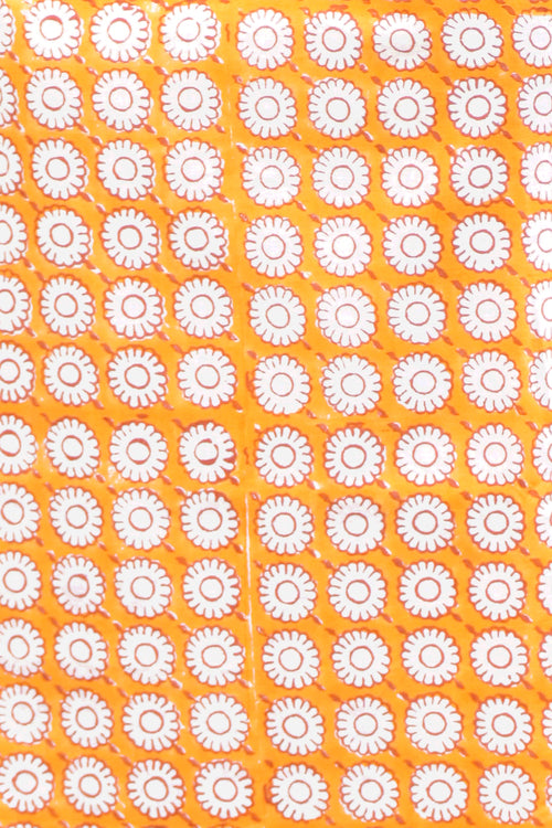 Savor the exquisite allure of our "Hazara bazaar" night suit print and embrace the positive energy and beauty of marigold flowers. Let the warm and radiant colors uplift your spirit and infuse your wardrobe with a sense of joy and celebration. Experience the essence of this culturally significant flower and adorn yourself with the vibrant charm of marigolds. Indulge in the beauty and comfort of Sootisyahi's hand-block printed night suits. With their exquisite design, high-quality cotton fabric, Azo free dyes and thoughtful details, these night suits are the perfect choice for a restful and cozy night's sleep. This night suit has a short kurta and bottom with ¾ sleeve. The kurta also features a convenient side pocket, perfect for keeping your essentials close at hand during your vacation or leisure time. Experience the joy of wearing artfully crafted sleepwear that combines style, comfort, and a touch of luxury.