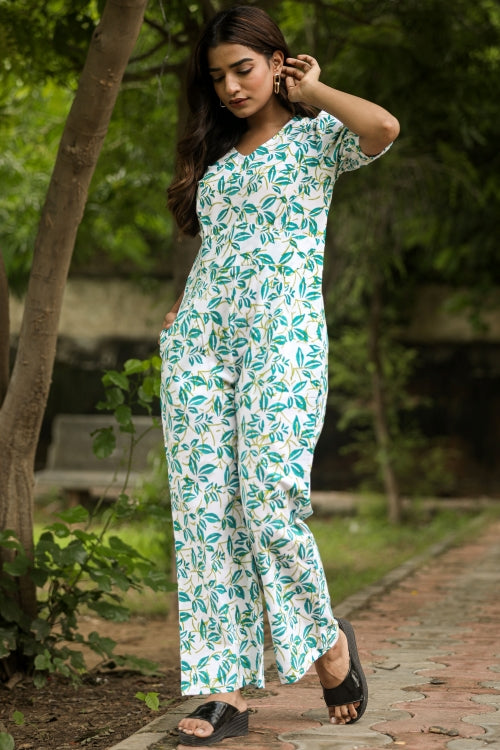 Sooti Syahi Hazel Leaves Hand Block Printed Jumpsuit