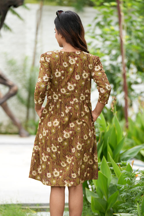 Whether you're attending a special event or simply want to elevate your everyday style, our "Mahogany Spice" dress is a perfect choice. It effortlessly combines elegance with a touch of bohemian flair, making it a versatile and timeless addition to your wardrobe. With Sootisyahi, you can embrace sustainable fashion without compromising on style. The use of azo-free dyes ensures a safer and more eco-friendly production process, allowing you to wear this dress with confidence and pride. Each dress is meticulously handcrafted by skilled artisans, ensuring attention to detail and a unique touch. The hand block printing technique adds an element of artistry and authenticity to the dress, showcasing the beauty of traditional craftsmanship. The flowing silhouette enhances the feminine charm, while the intricate floral patterns add a touch of grace and allure.