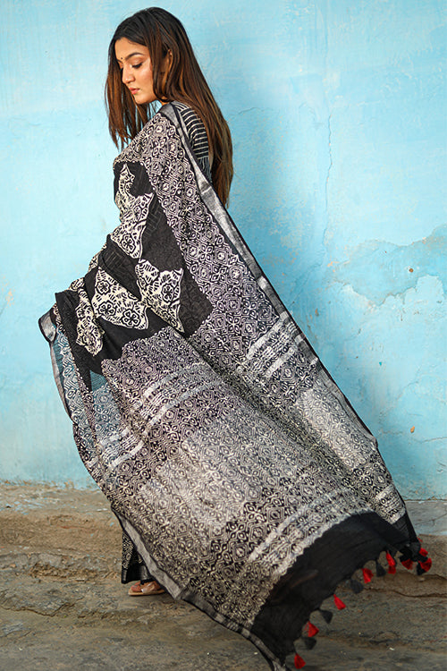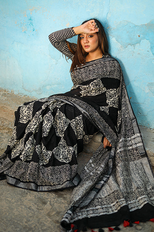 Who is a pawn and who is his king, can we really tell before the war is truly won? The most wonderous element of the world is possibly this, the end is same for father or the son. This slub cotton saree is crafted with Chuna Patri Handblock printing. It’s a Handprinted Slub Cotton Saree which is a comfortable cotton fabric resembling textures of linen fabric. It’s a 5.5 mtr saree drape with an exclusive 80 cm blouse piece to go with.