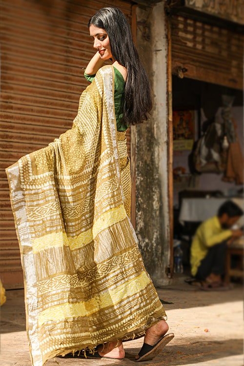 Two little kids, they pulled out a compass from it's beaten up metal box. A+R they wrote on the wood. Promises were sealed upon the wooden heart. After she was long gone, and they told him he must marry a tree for good luck, he smiled for at last he knew the best match! This slub cotton saree is crafted with Kashish Dabu Handblock printing. It’s a Handprinted Slub Cotton Saree which is a comfortable cotton fabric resembling textures of linen fabric. It’s a 5.5 mtr saree drape with an exclusive 80 cm blouse piece to go with. Recommended separate wash in cold water with mild detergent only or dry-clean & there are chances of color bleeding of Indigo which is a sign of the genuineness of prints and dying. Blouse wore by model is not part of saree, blouse with saree could be different. Returns will only be considered in case of any defect in saree. There could be minor color variation from image shown here as it depends on screen bightness of device and photography.