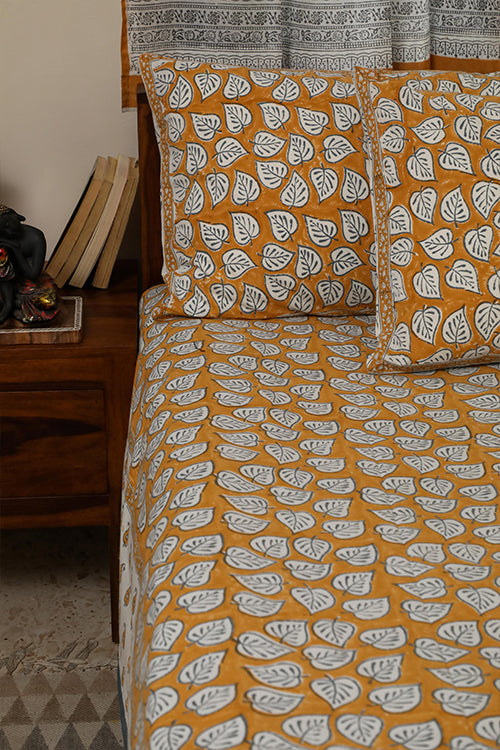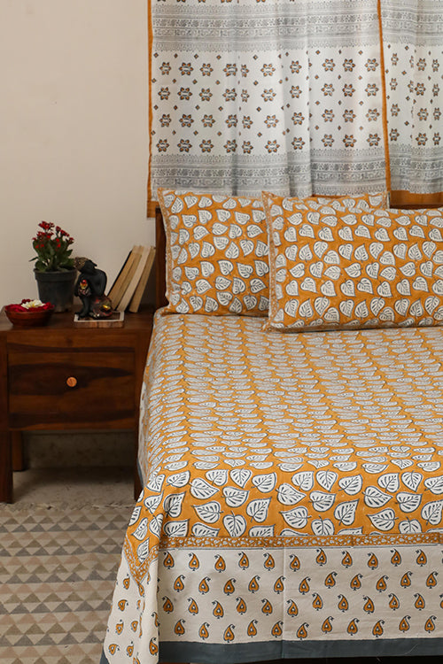 Handblock printed king size cotton bedsheets with two pillow cover to enhance grace & luxury of your bedroom. This handblock printed bedsheet is handcrafted by artisan printers of Sanganer Jaipur, who are one among the torchbearers of Indian Craft. Handblock printing is a centuries-old art form that utilizes a hand-carved wood block, dipped in dye and stamped by hand onto fabric. This set includes One Bedsheet Size: 90*108 Inches, Two Pillow Covers Size : 40*70 Inches Crafted with love by Sootisyahi
