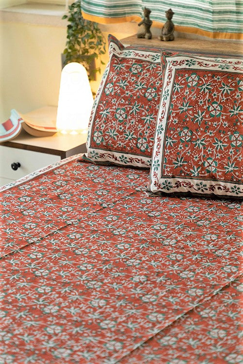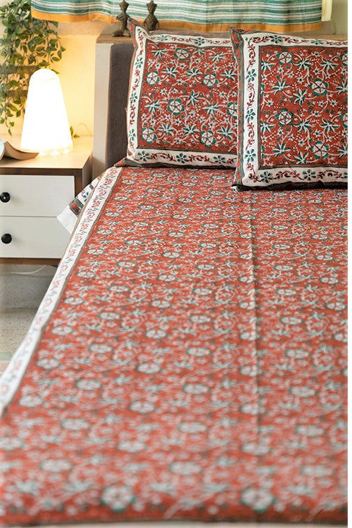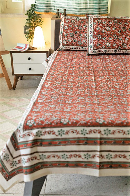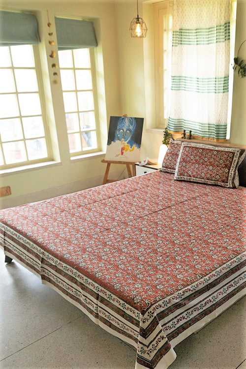 Sootisyahi 'Coral Crush' Handblock Printed Cotton Bedsheet
