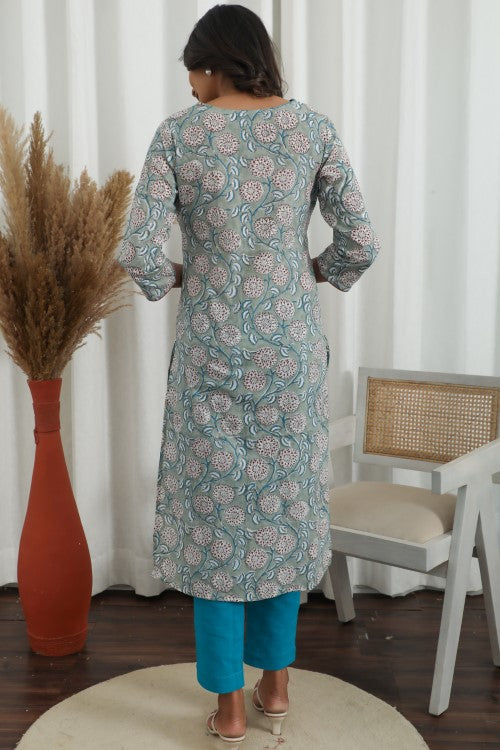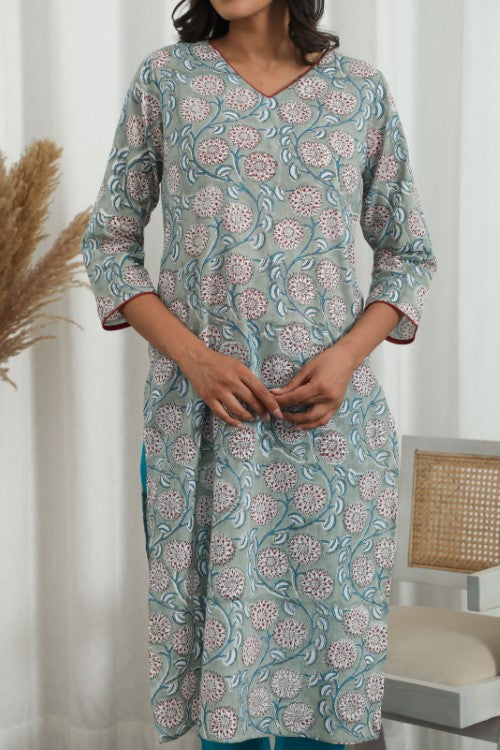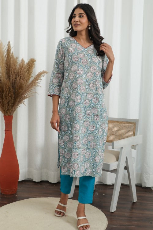 Transform your look with our ' Daisy Chain ' Azo-free hand block printed pure cotton kurti. This stunning piece is made from breathable cotton, providing comfort and style all day long. Handcrafted by skilled artisans, every detail is infused with traditional craftsmanship, featuring a beautiful leaf design .adorned with striking blue and red hues, offering a perfect blend of traditional elegance and contemporary style. The eco-friendly color dyes used for further demonstrate our dedication to ecological quality in our products. Don't wait to add this essential piece to your wardrobe!