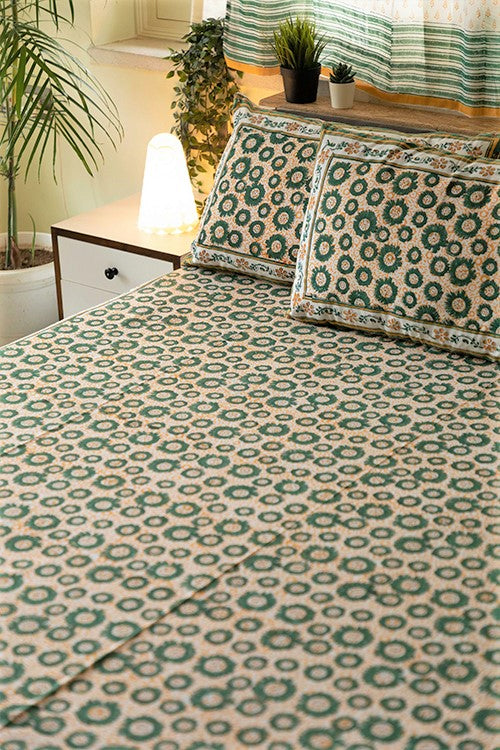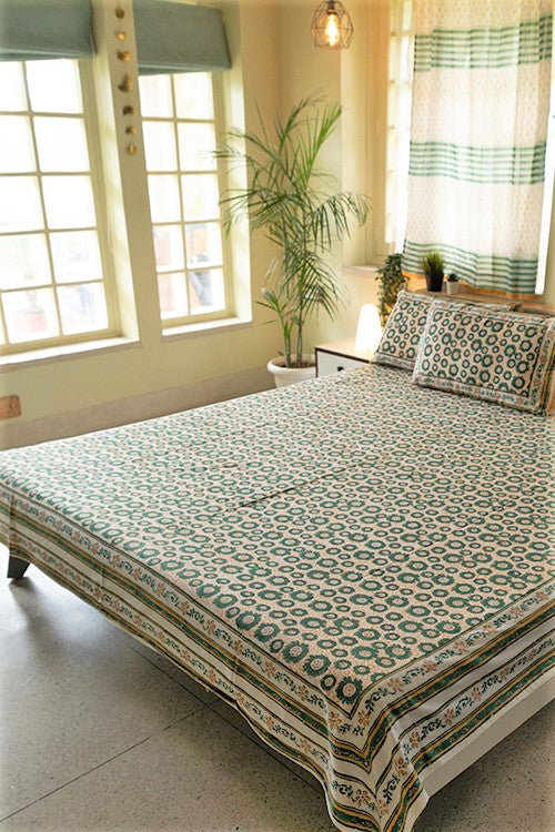 Sootisyahi 'Green Glow' Handblock Printed Cotton Bedsheet