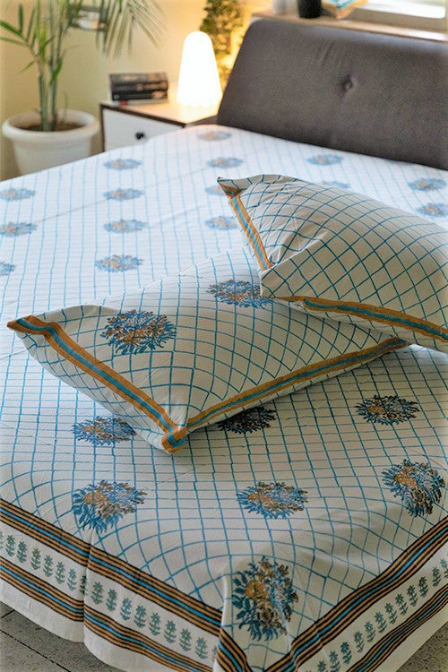Sootisyahi 'The Garden Fence' Handblock Printed Cotton Bedsheet