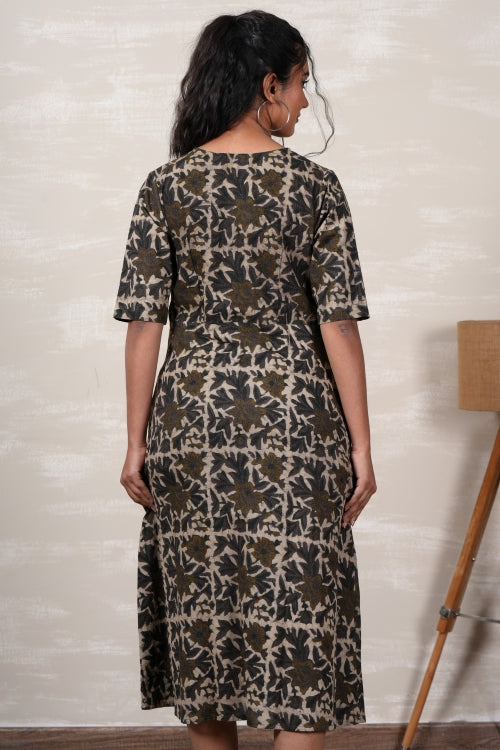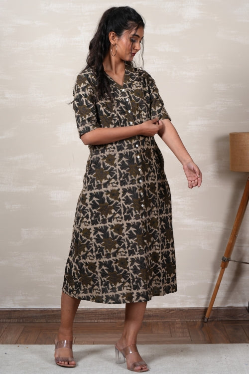 Our magnificent block printed dress blends heritage and modern elegance for your professional outfit. This dress, meticulously crafted, blends refinement with ethnic charm, making it ideal for the contemporary office.The shape of our Office Wear Artisan Block Printed Dress is great, balancing professionalism and style. A perfect workplace outfit, its precise fit and modest neckline draw attention without being extravagant. Elegantly draped, the dress flatters the female shape and allows for daytime mobility.The classic elegance of our professional Wear Artisan Block Printed Dress elevates your professional style. Elegant and well-made, it's a wardrobe must for the contemporary professional who values handmade workmanship.