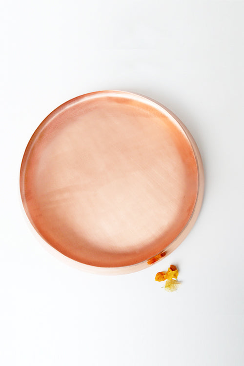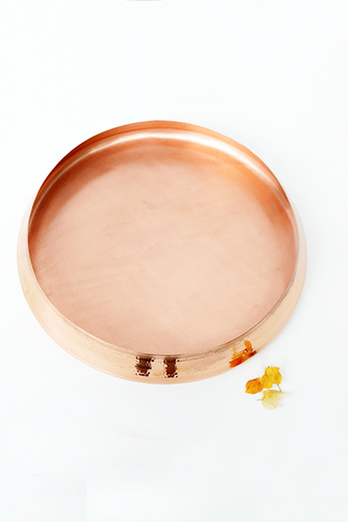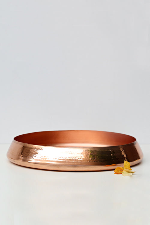 Short with a wide circumference, this Floater is a great accent piece for home or office. It can be used in multiple ways – as a floater, organizer, a tray and more. The colour of copper and the fine etches are a treat. It can be used in multiple ways – as a floater, organizer, a tray and more. Size: 14 " dia x 2" ht