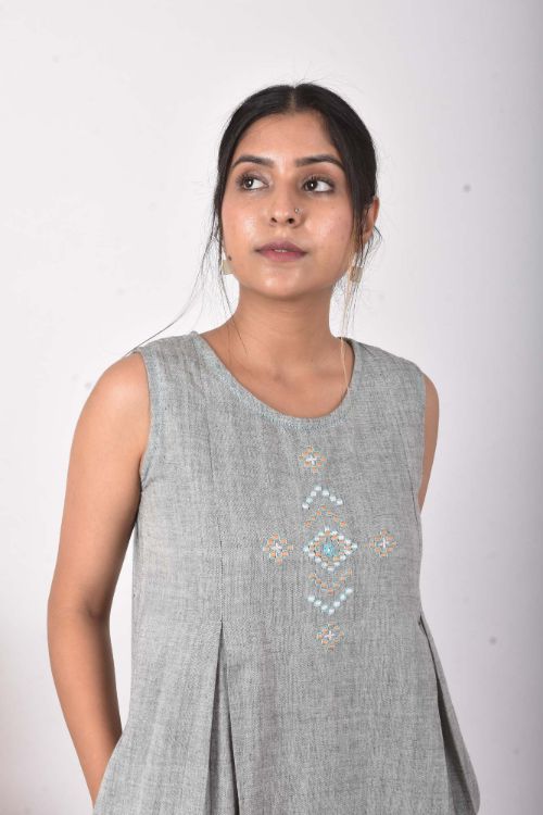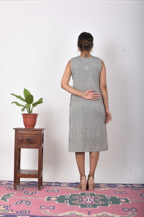 Moth is an elegant short dress with half sleeves which has been handcrafted with affection from the culturally rich land of Rajasthan. The elegant beauty has been ornamented with traditional embroidery in a very modern silhouette. Moth has a beautiful handcrafted traditional motif at the back panel of the dress to provide a right mixture of contemporary and traditional aesthetics to it.