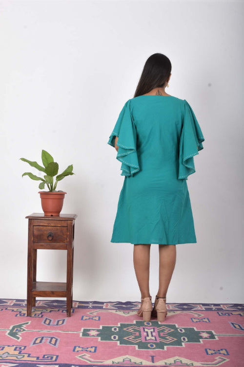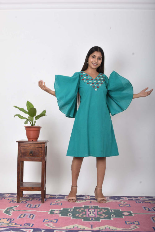Regal is a magnificent flowy short dress with a gorgeous modern silhouette and traditional embroidery from the culturally rich land of Rajasthan. The unbound sleeves of regal instills it with a soulful essence to the garment. Regal has been beautified with traditional regional handembriodery of the western Rajasthan. The intricate work provides a bohemian essence to the regal which is the perfect garment for all the free spirited bohemians out there.