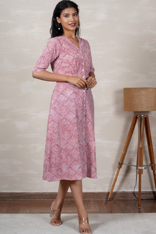 Our magnificent block printed dress blends heritage and modern elegance for your professional outfit. This dress, meticulously crafted, blends refinement with ethnic charm, making it ideal for the contemporary office. The shape of our Office Wear Artisan Block Printed Dress is great, balancing professionalism and style. A perfect workplace outfit, its precise fit and modest neckline draw attention without being extravagant. Elegantly draped, the dress flatters the female shape and allows for daytime mobility. The classic elegance of our professional wear artisan Block Printed dress elevates your professional style. Elegant and well-made, it's a wardrobe must for the contemporary professional who values handmade workmanship.