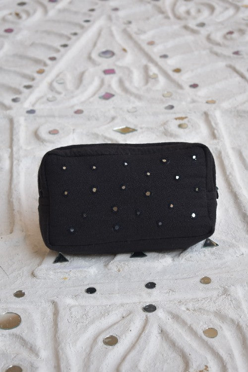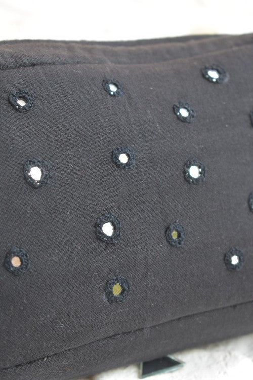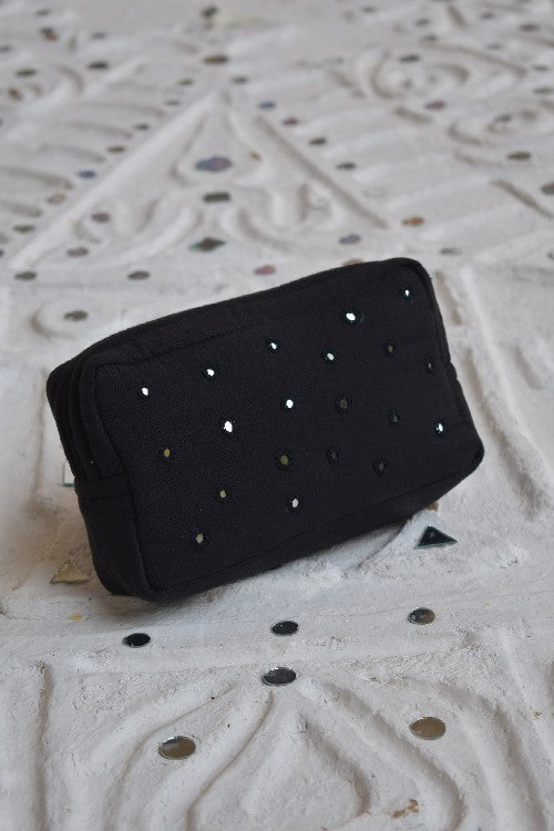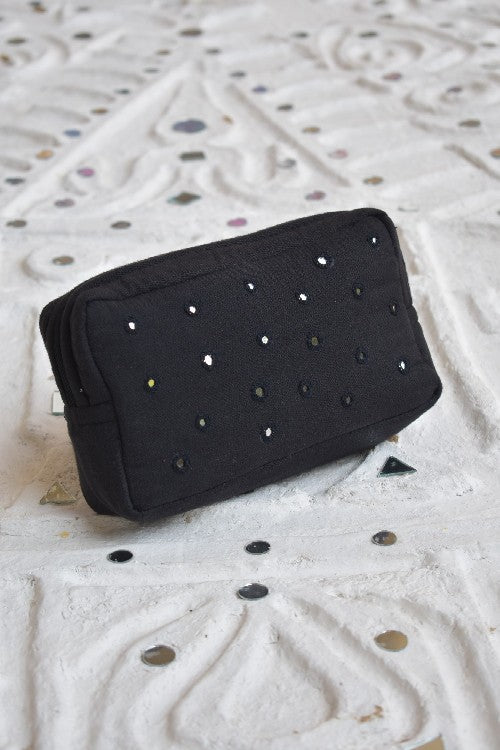 Do you feel guilty about having your essentials lying around your home? We heard you! Crafted by our artisans in Mithapur, 'Silent Breeze' is a beautiful pouch which will fulfil all your needs. The elegant touch comes from the intricate mirrorwork all over and holds the perfect shape with the quilting done inside. Finally, the pouch is concealed with a sturdy zipper.