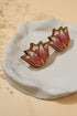 WHE Pink Bloom Lotus Repurposed Fabric And Wood Earrings