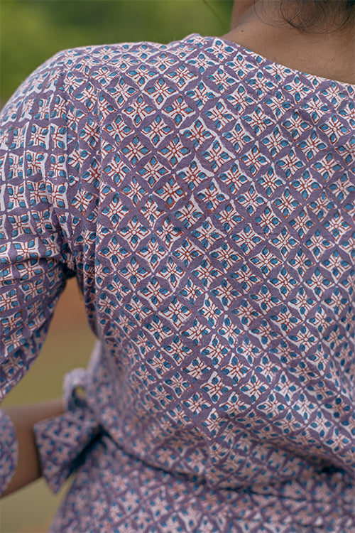 The perfect easy-breezy holiday dress is here! And it’s our ‘Adapt' wrap-around dress made from pure cotton naturally dyed hand block printed fabric. This piece comes with one pocket for your essentials. We have kept it embroidery-free to let the stunning pattern in soft lilac do all the talking. This is a statement piece that tells the world you’re ready to have some fun! Keep it casual or accessorize with some vintage jewellery depending on your mood. Feel stylish as you team it with a pair of sandals or sneakers and go exploring a foreign city!
