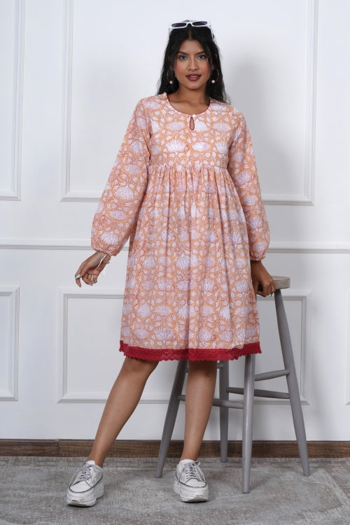 Sooti Syahi Bliss Peach Hand Block Printed Dress