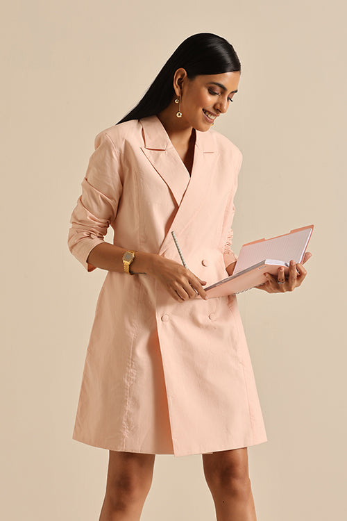 An epitome of unique craftsmanship, our newest pure cotton blazer dress 'Captain' has been handcrafted by Mithapur artisans and meticulously herbal dyed. We've added two pockets on the sides for the utmost comfort, along with buttons for closure in the front and at the edge of the sleeves. Felt has been added on the shoulder to give you the perfect fit. Wear a white crop top underneath the blazer. Pair it with white pants for an elegant look and we bet you are ready to run the world.