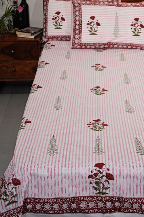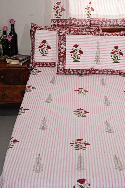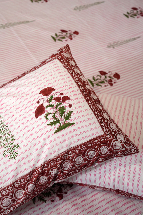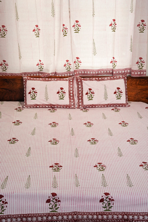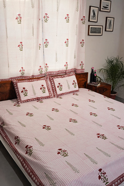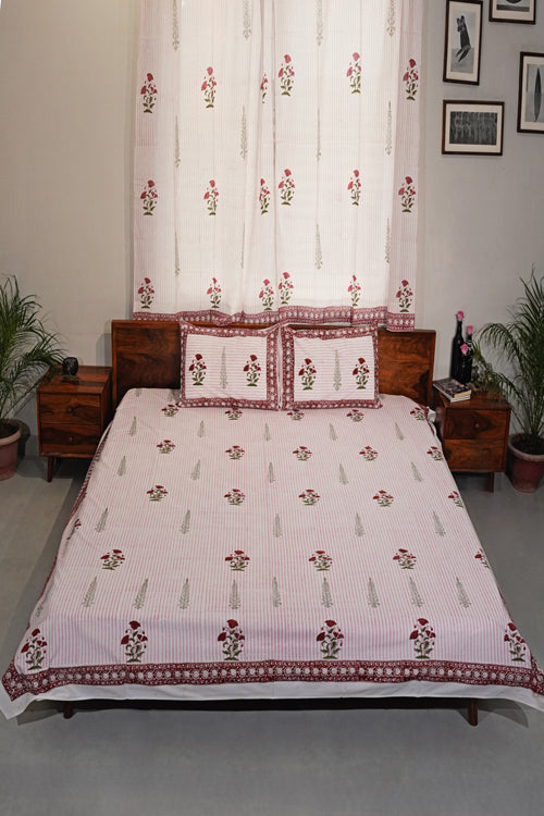 Transform your bedroom into a serene oasis with our Hand-Block Delight: Crimson Poppy Fields Bedsheet. This exquisite bedsheet showcases a captivating display of hand-blocked crimson poppies dancing amidst delicate foliage, creating a scene of timeless beauty and tranquility. Each petal and leaf has been meticulously printed by skilled artisans, ensuring that every bedsheet is a unique work of art. The soft, breathable percale cotton fabric invites you to sink into blissful relaxation, while the gentle hues of crimson and blush pink create a soothing ambiance that promotes restful sleep. The intricate patterns and delicate details add a touch of vintage charm and elegance, elevating the style of any bedroom. Experience the luxurious comfort and artistic allure of our Hand-Block Delight: Crimson Poppy Fields Bedsheet. It is more than just bedding; it is an invitation to embrace the beauty of handcrafted artistry and transform your bedroom into a haven of peace and serenity. I