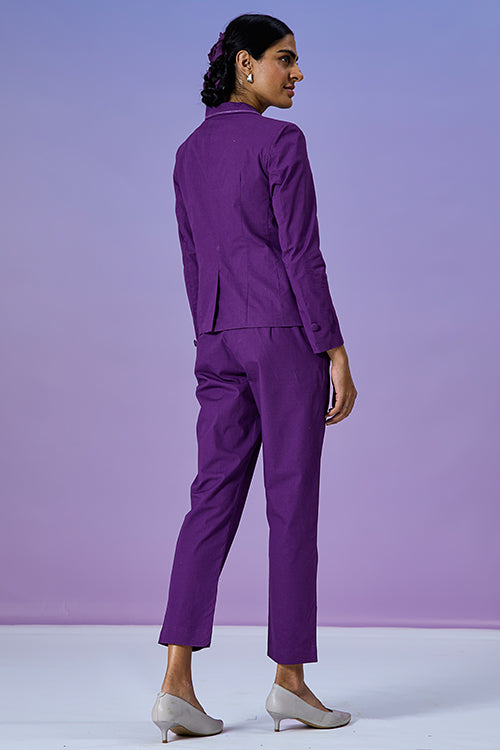 We're here with our handcrafted 'Delightful' pants to celebrate you, and your distinct personalities as a mother, daughter, and wife whilst acing all of them! We admire every bit of you, and how you beautifully play each role and outshine every time! The deep purple colour speaks of boldness and represents that you're not afraid of standing out in a huge crowd. A classic pair of ankle-length pants, these feature two pockets and wooden button on the inside belt for closure. The straight-cut trendy pants pair wonderfully with Indian or urban wear. Be it for a day of walking or lounging, these pants provide the utmost comfort.