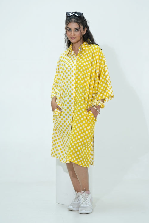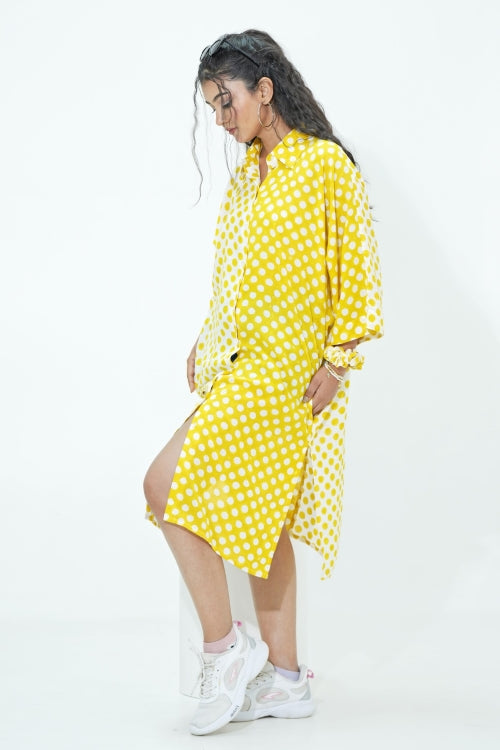 Sooti Syahi Elina In Yellow Hand Block Printed Oversize Shirt