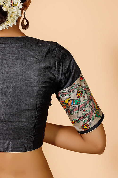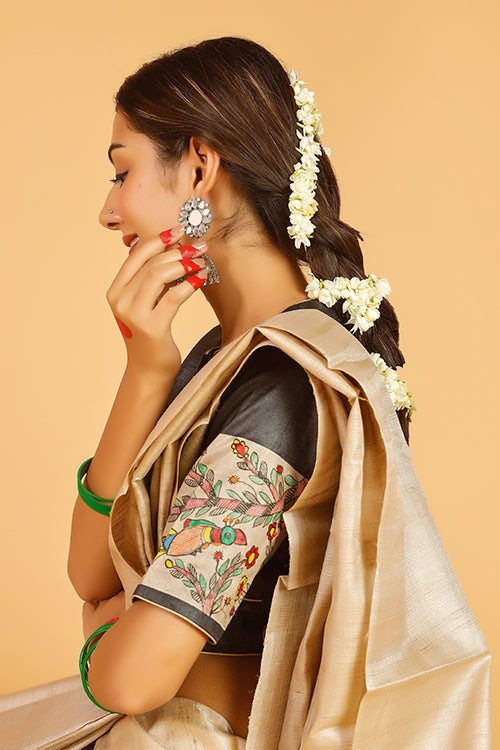 Gubbaro Handpainted Madhubani 'Morni' Tussar Silk Blouse