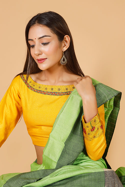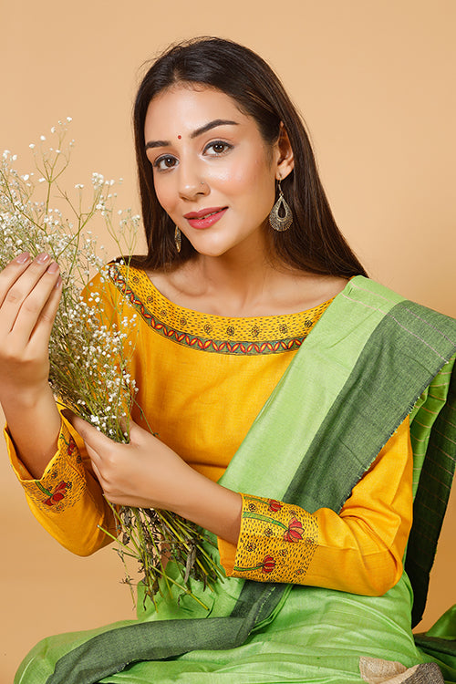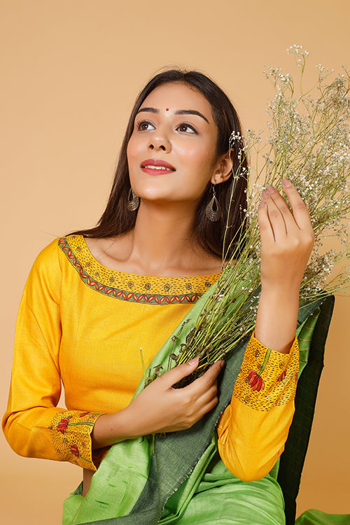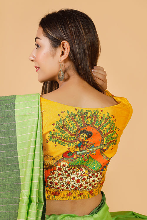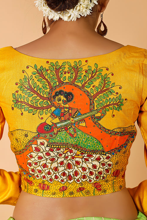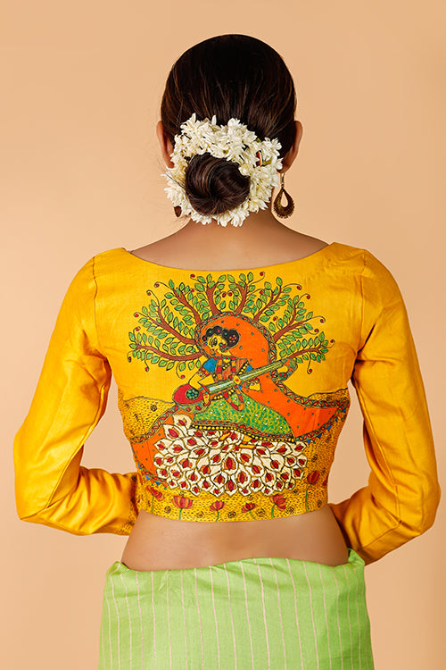 Gubbaro Handpainted Madhubani 'Saraswati' Moonga Silk Blouse