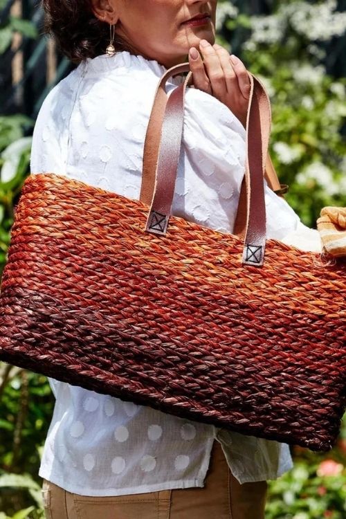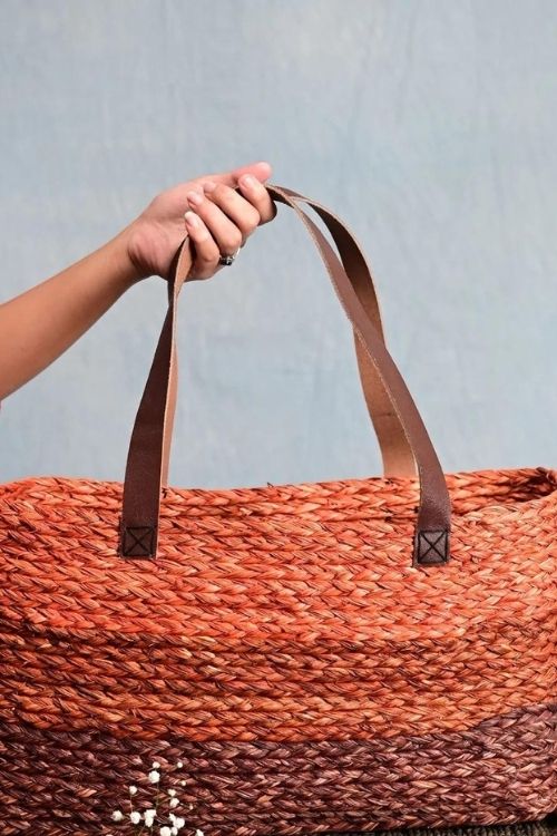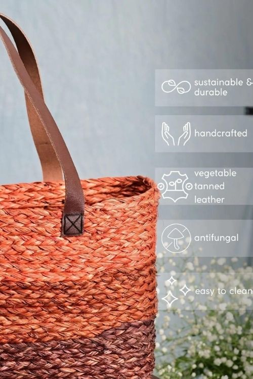 Kadam Haat Handmade Sabai Grass Shopping Bag - Orange & Red