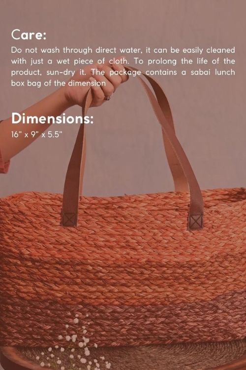 Crafted with Sabai Grass, this unique home and kitchen décor piece brings an organic element to the environment. Intricately woven, the non-plastic bag is perfect for carrying vegetables and fruits with its attractive bright colour. Hailing from the West Bengal and Orissa Mayurbxhanj area, it takes the skill of about 60 households of craftswomen and craftsmen to make ends meet with this sustainably-sourced material, which is historically renowned for its strength - having been used by the British Army to pull artillery. The lid is also crafted from bamboo from East-Midnapur. This package contains one handcrafted vegetable bag, colored by azo-free dyes.DIMENSION -L 41cm x W 23cm x H 14cm
