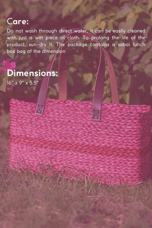 Crafted with Sabai Grass, this unique home and kitchen décor piece brings an organic element to the environment. Intricately woven, the non-plastic bag is perfect for carrying vegetables and fruits with its attractive bright colour. Hailing from the West Bengal and Orissa Mayurbxhanj area, it takes the skill of about 60 households of craftswomen and craftsmen to make ends meet with this sustainably-sourced material, which is historically renowned for its strength - having been used by the British Army to pull artillery. The lid is also crafted from bamboo from East-Midnapur. This package contains one handcrafted vegetable bag, colored by azo-free dyes.DIMENSION -L 41cm x W 23cm x H 14cm