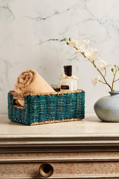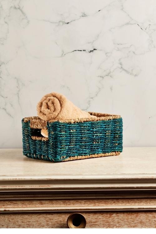 Kadam Haat Handmade Sabai Grass Towel Basket - Small(Indigo)