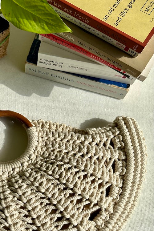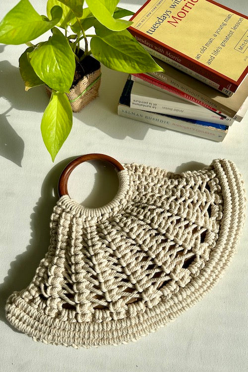 Whether you're heading out for a casual stroll, attending a social gathering, or simply want to add a touch of bohemian flair to your ensemble, this macramé handbag with top-quality wooden handles is the ideal accessory. Its fusion of beauty, functionality, and handcrafted artistry makes it a must-have for those seeking a unique and versatile accessory.