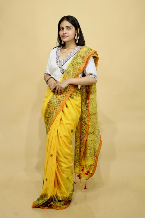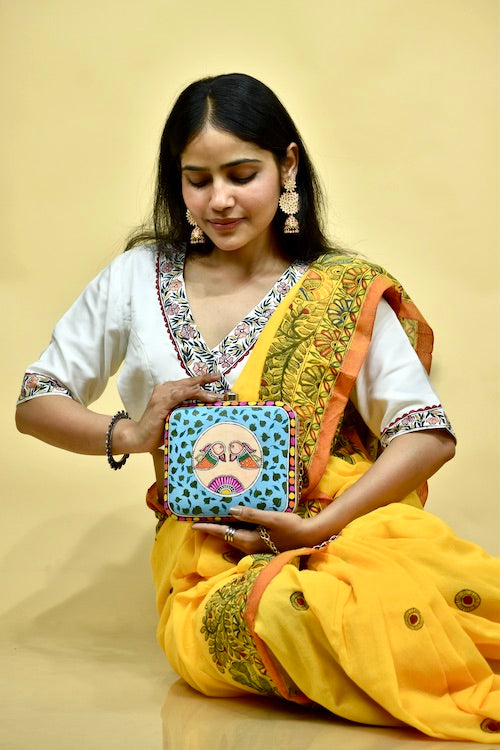 Madhubani painting is a famous art that originated in the Mithila region of Bihar (India). Madhubani hand-painted art is considered to be as old as the era in which Ramayana was set. It is said that inhabitants of the Mithila region painted their homes and streets with Madhubani art. Madhubani paintings were done to celebrate the wedding of Lord Ram and Sita. Madhubani paintings were done using natural colors and twigs of the tree. These days it is done using acrylic paints and brush. Each item is handcrafted with the hand-painting technique, and might carry variations of color, patterns and other delicate inefficiencies. Handloom fabric may have uneven texture.