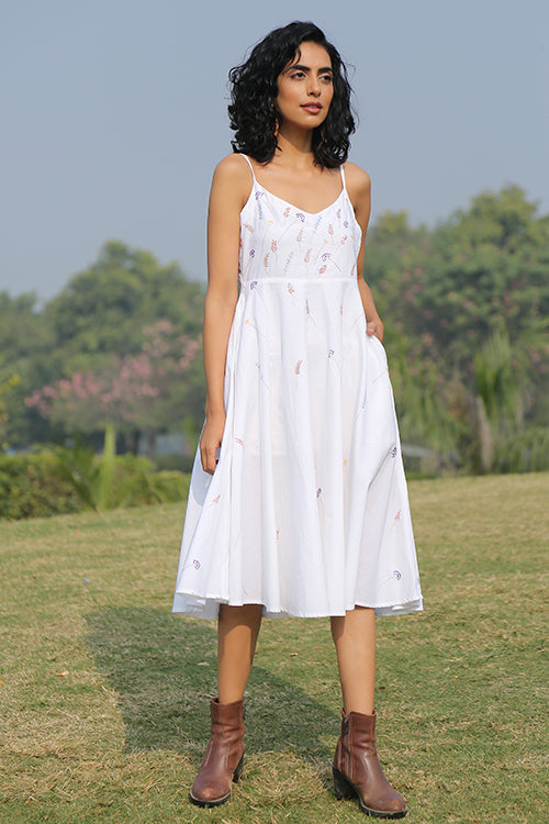 "Make your dreams come true for the breezy summer days as your grace yourself with our brand new 'Noble', the most soothing touch you'll feel as you wear it. Soft, durable, handmade and embroidered, Noble is everything that an Okhai woman is looking for. The whimsical dress is double layered for added delicacy and comfort. Coming with adjustor straps and concealed zipper on the side aids in a better fit according to your pleasure. But the best feature about the dress is its intricately embroidered motifs with vibrant threads scattered in the front and at the back. Make it your favourite holiday companion, your friends won't stop complimenting the beauty that the dress is going to embrace!