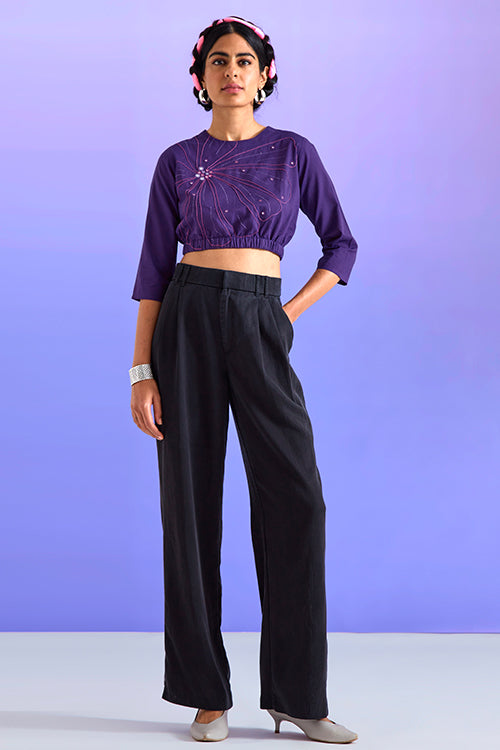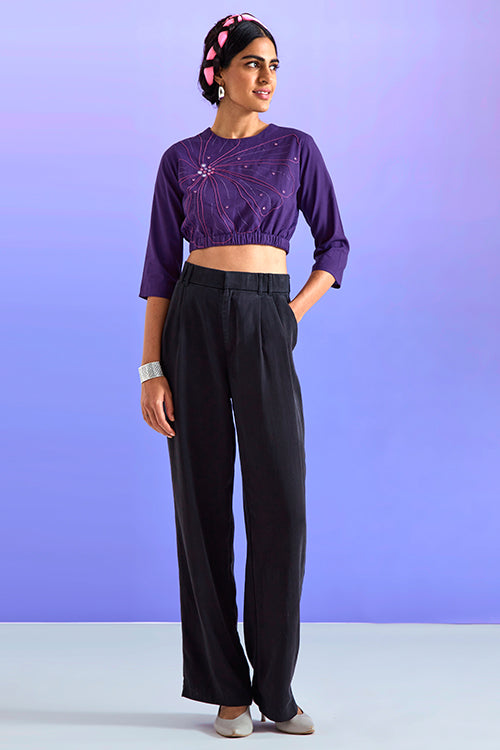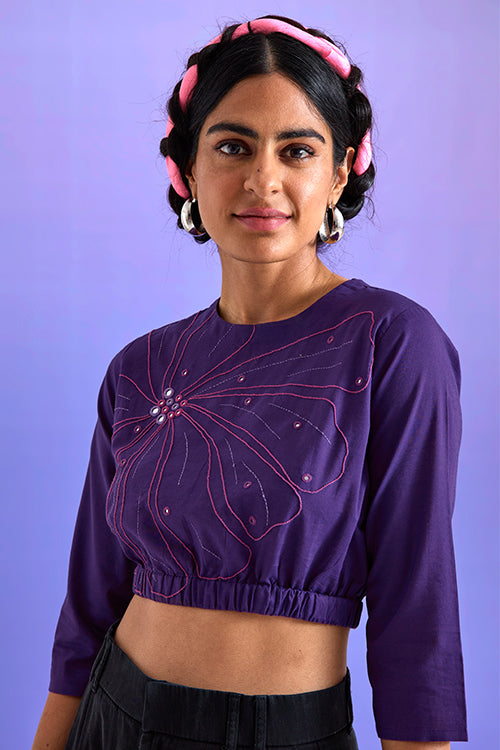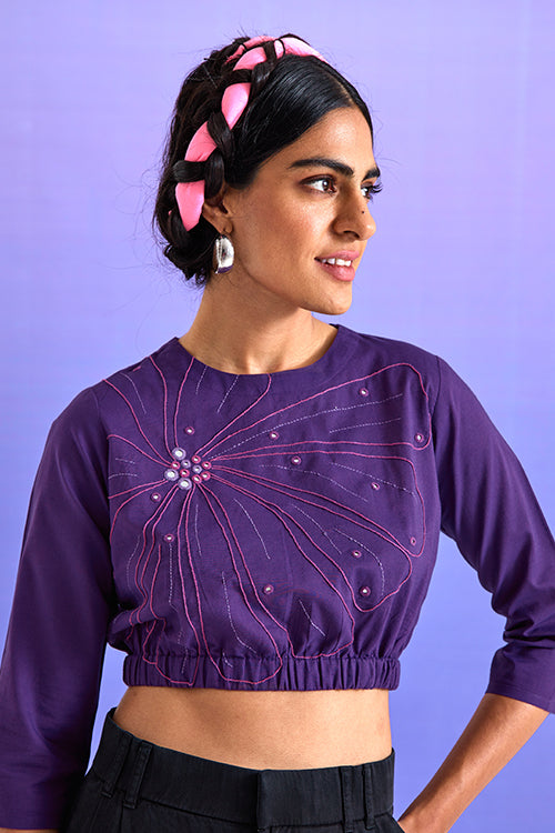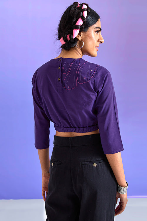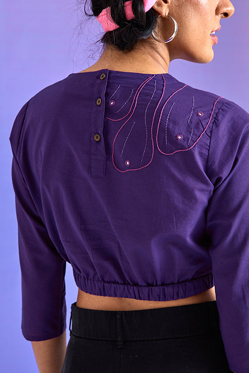We strongly believe that every woman should feel strong and empowered each day, which made us craft this ensemble. Thoughtfully handcrafted by our artisans in Mithapur, this top is going to rejuvenate your 'Empowered' spirit! The pure cotton fabric soothes your body, and the top features elasticated along the waistline and three wooden buttons at the back for closure. The deep purple hue is going to make you stand out, and additionally, the intricate embroidery of stem stitch along the front yoke with mirror work adds a little extra charm to the silhouette. For those with a sophisticated style, pair these with white pants and statement silver jewellery or get a little playful and pair it with a skirt! We love seeing you style them in different ways. Don't forget to tag us on instagram whenever you take this with you on your next vacay!