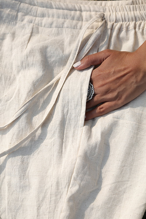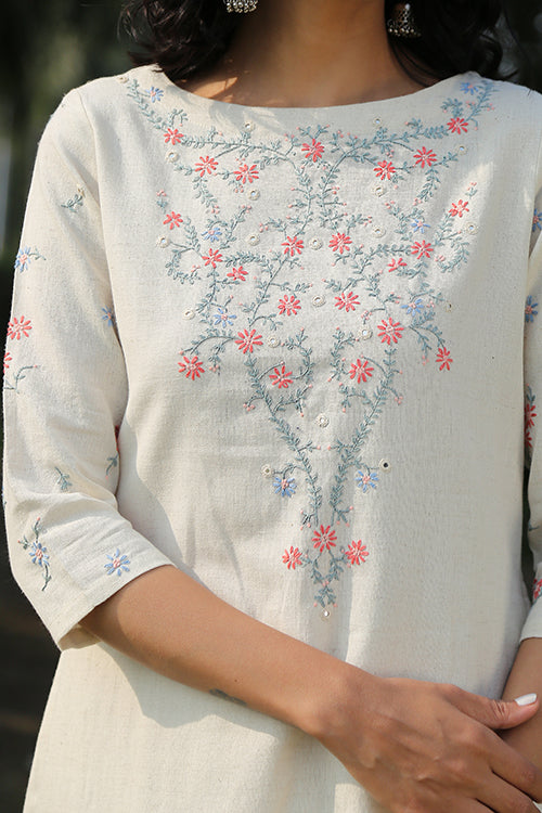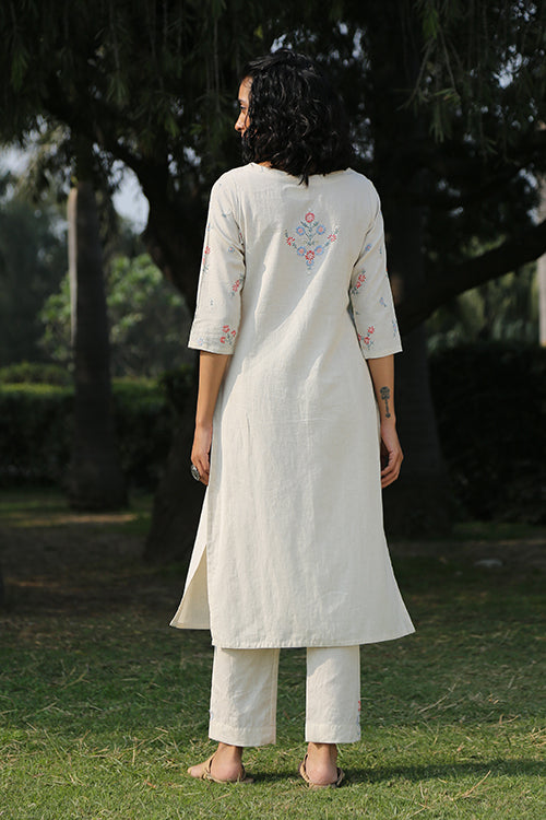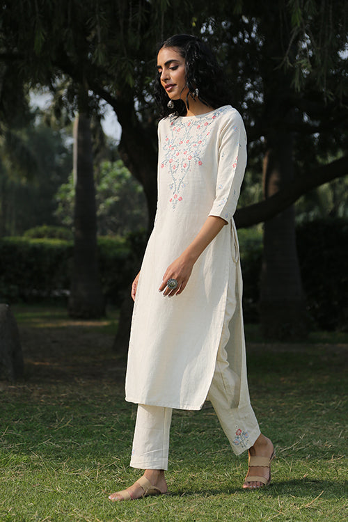 Okhai 'Ivory Pearl' Hand Embroidered Cotton Kurta Pant Set