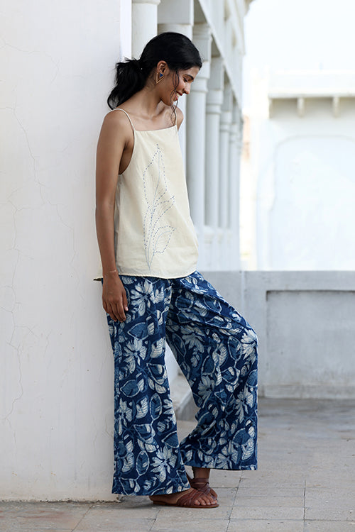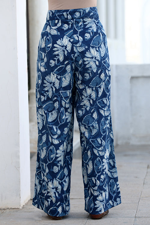 Embrace effortless elegance with our "Night Glory" Handblock Printed Pure Cotton Indigo Pants. Handcrafted from pure cotton, these pants dazzle in a brilliant indigo shade, enhanced by ethereal floral motifs handblocked by our skilled artisans. Featuring four Mother of Pearl buttons and a concealed zipper on the side, the pants offer a polished look with a fusing belt for a secure fit. With two pockets on the sides, they combine style with practicality. Perfect for any occasion, these pants promise comfort and sophistication. Pair them with a simple top or a chic kurta for a look that's as versatile as it is beautiful.