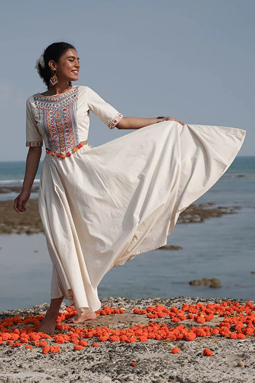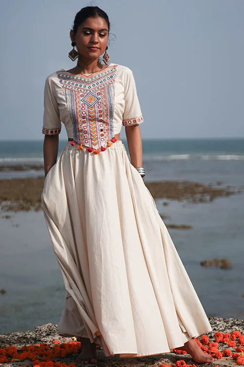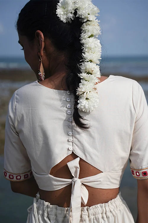 Okhai 'North Star' Hand-Embroidery and Mirrorwork Off White Pure Cotton Blouse