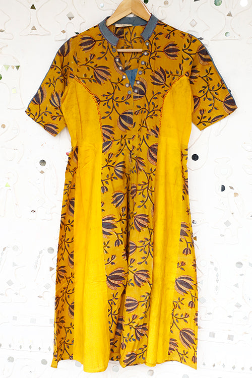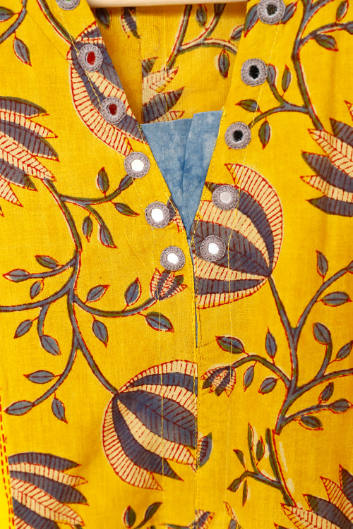 This garment is a final sample and for size and fit please refer size chart. Go through the wash care below carefully. Returns and exchanges are not possible on sample sale. Fabric Type: Hand Block Printed Cotton Wash Care: We use natural dyes in some of our products, since dark colours tend to run dry cleaning is recommended. The first few times wash in cold tap water, wash inside out and dry in shade. Use mild detergents only.