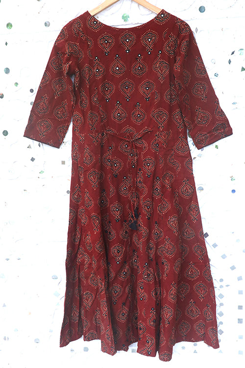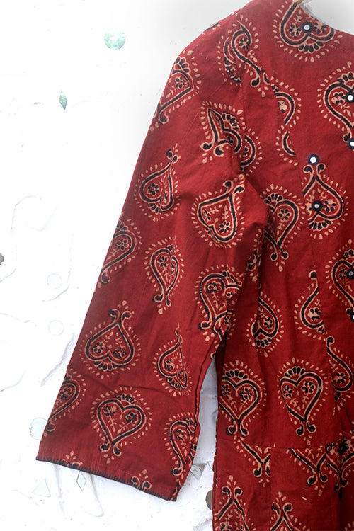 This garment is a final sample and for size and fit please refer size chart. Go through the wash care below carefully. Returns and exchanges are not possible on sample sale. Fabric Type: Hand Block Printed Cotton Wash Care: We use natural dyes in some of our products, since dark colours tend to run dry cleaning is recommended. The first few times wash in cold tap water, wash inside out and dry in shade. Use mild detergents only.