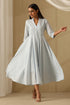 Poetry embodied in every inch of this dress, "Shayari" is here to make you feel absolutely ethereal. Handcrafted from pure cotton, the gentle blue-hued fabric is adorned with hand embroidery on the front yoke and embroidered motifs on the back and the sleeves edges. As functional as it is fashionable, the front placket with Mother of Pearl buttons is fully functional and concealed. To provide opacity, a pure cotton mul slip has been included. Slide your hands and knit bits into the 2 pockets on the sides of this dress. Keep the look minimal by putting on some silver jewelry and heels and there, you're set to look effortlessly elegant!